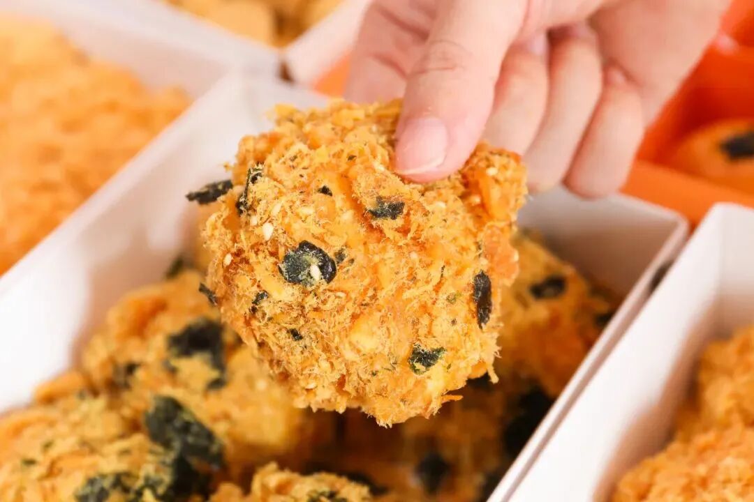 裹上厚厚一层肉松的小贝,拿在手上感觉就是一个个软宝宝。看得见的实在用料,吃得到的用心制作,恰到好吃的咸甜滋味,惹得人一个接着一个,吃到停不下来。