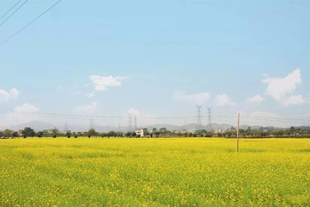 点赞2:金灿灿的花海把乡村点缀得异常美丽,沿路风景秀丽,如诗如画,远远看去,花海像一条金色的毯子铺盖在地上。
