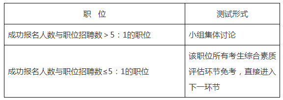 4.综合素质评估主要采取小组集体讨论形式,对考生进行考察。各职位具体考核形式见下表。