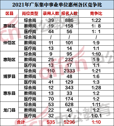 从2020年集中招聘招考报名情况来看,招考规模达20959人但报名人数117789,其中综合岗竞高的也只有13:1,咱们大惠州的竞争比低至1:0.1,平均竞争比只有1:10,是个很好的机会!