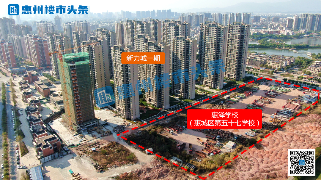 西南侧是由碧桂园建设的惠城惠泽学校地块(即惠城区第五十七学校)。学校为九年一贯制学校,主要建设2栋4层的教学楼、1栋2层的风雨球场以及配套设施。