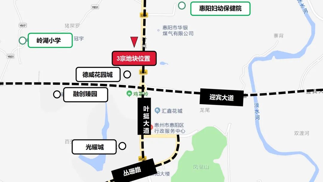 3宗地块位于惠阳三和片区叶挺大道旁,临近德威花园城。