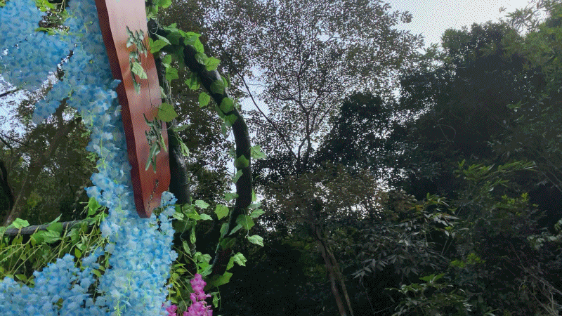 花桥长约50米,用多种颜色的花