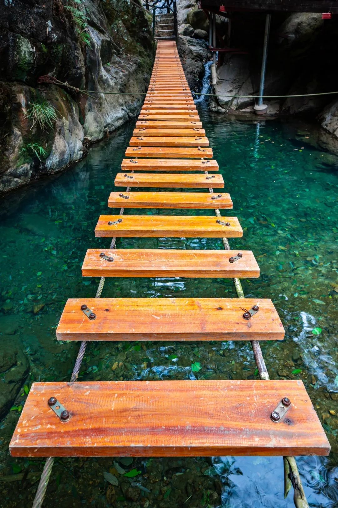 沿着泉水的潺潺水声,踏着浮桥