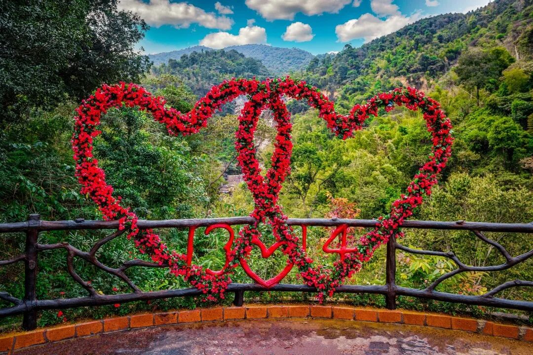 用花围成的520、1314心形超级浪漫