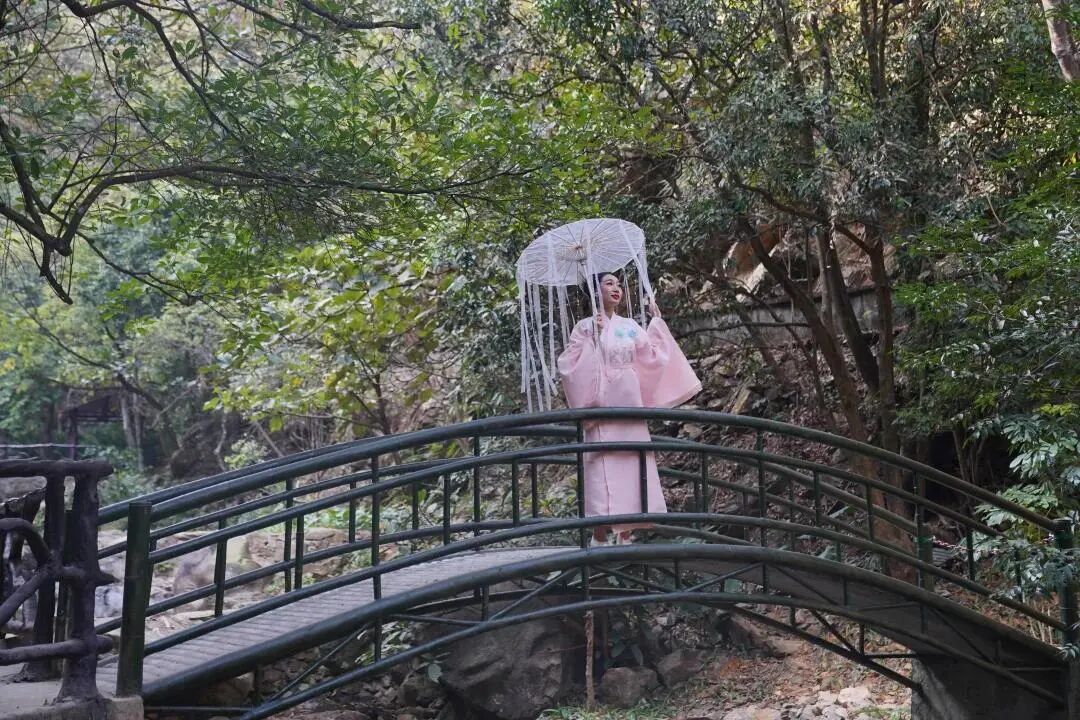 踩着泉间的溪石,跨过山间的小桥