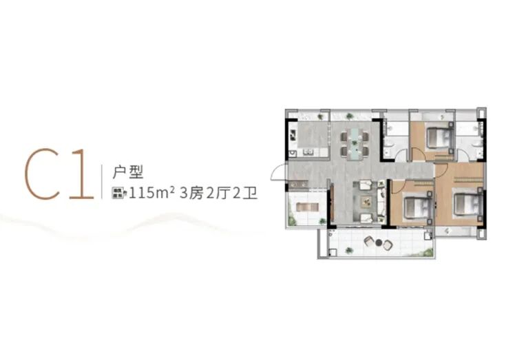 最后这个建面约115㎡的3+1房2厅2卫户型,可以说绝绝子。