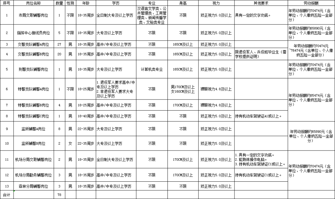 因工作需要,根据《广东省公安机关警务辅助人员管理办法》《惠州市公安机关警务辅助人员管理办法(修订)》等文件规定,按照公开、平等、竞争、择优的原则,面向社会公开招聘警务辅助人员78名。现将有关事项公告如下: