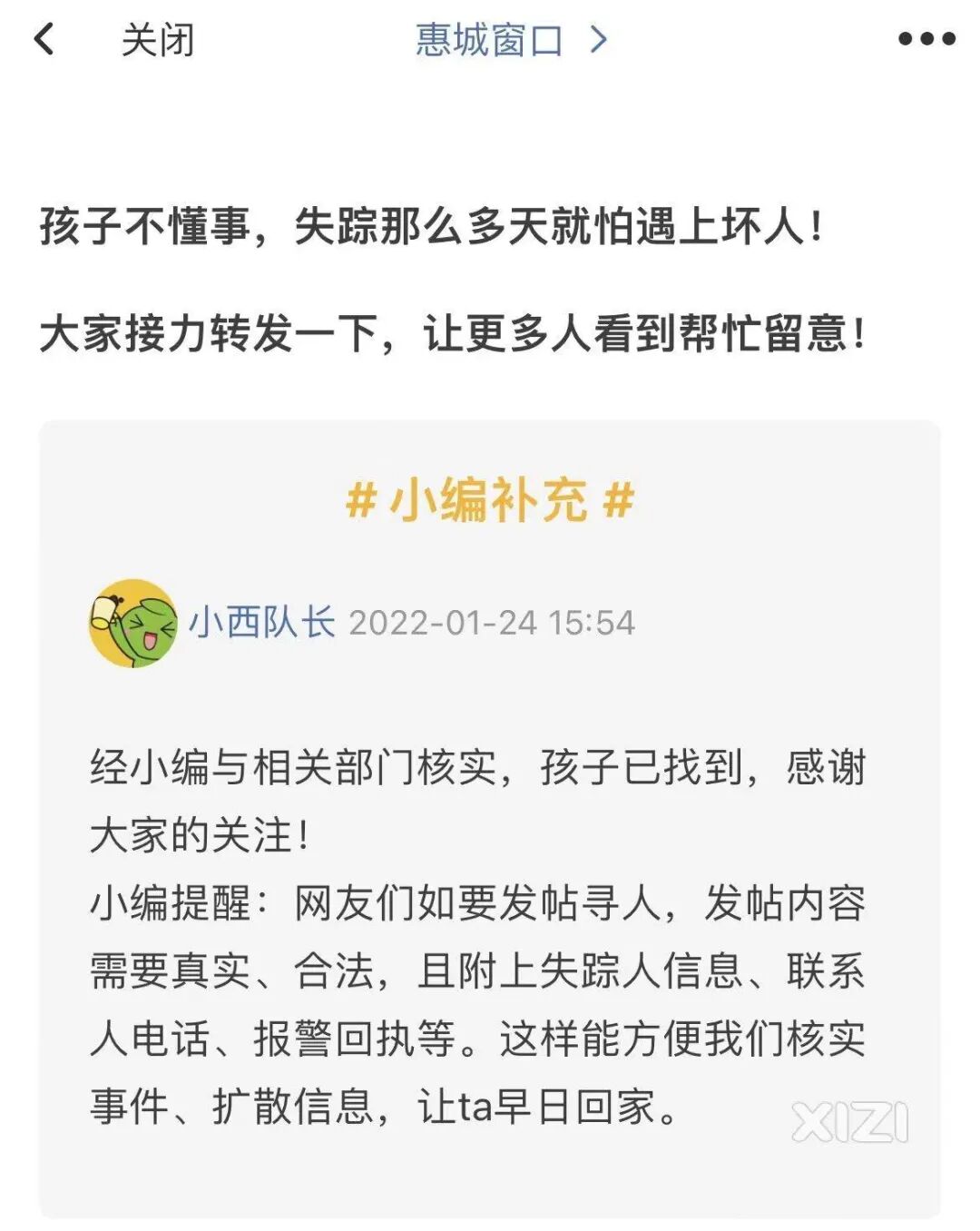 近日,西柚@惠州搬运工 在论坛里发帖子,帮寻离家出走的小孩: