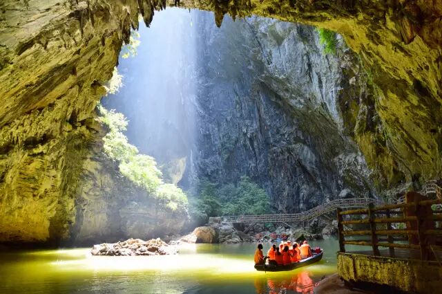 巨大的喀斯特天坑让人流连忘返