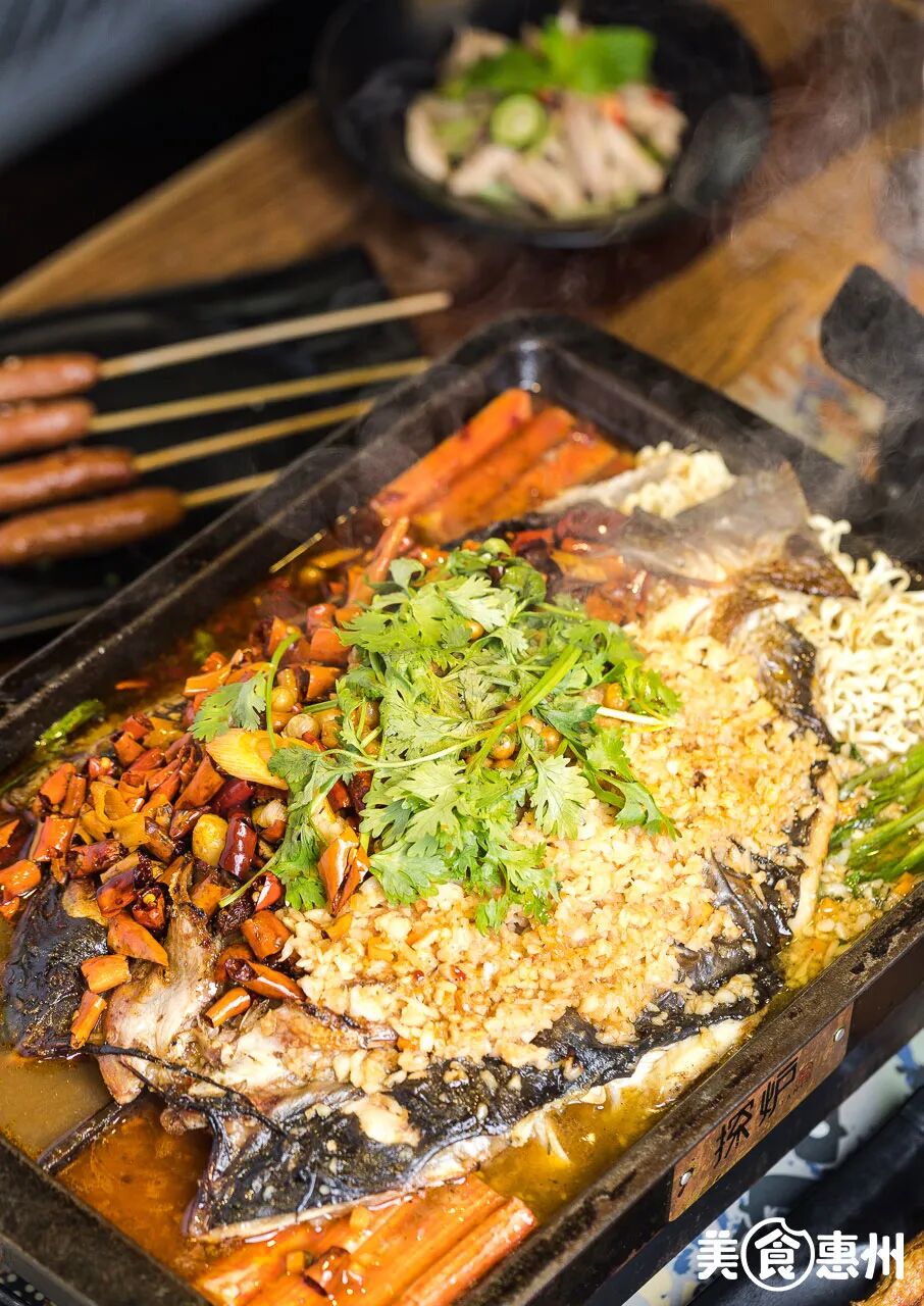 外脆里嫩的鱼肉上铺满了蒜蓉,又或者是诱人的干辣椒,高温之下每种食材都被激发出了香味,夹起一块鱼肉沾上酱汁送入口中,浓郁的香味就铺满了口腔~