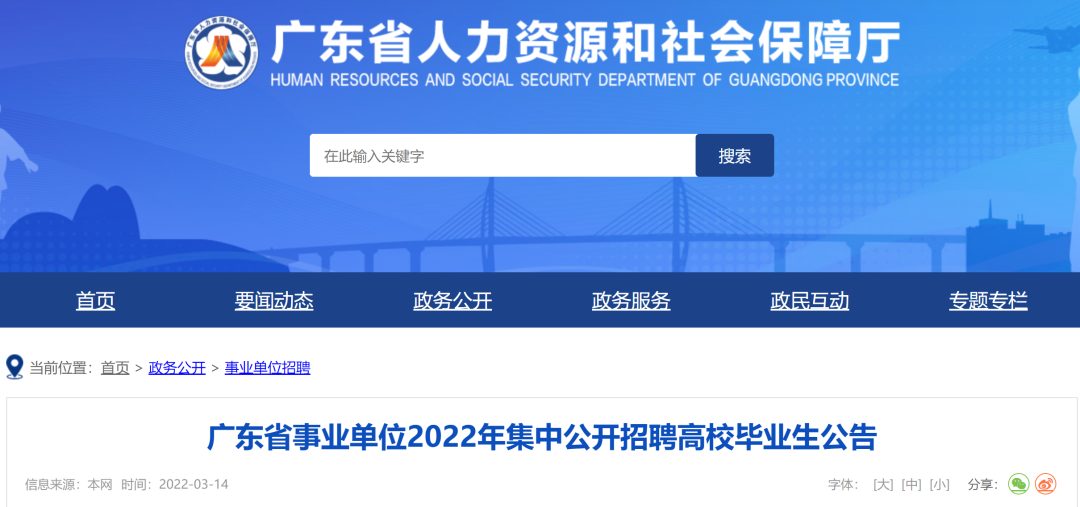 本次招聘实行网络报名。考生请于2022年3月28日9:00至3月30日16:00登录“广东省事业单位公开招聘信息管理系统(考生报名)”(https://ggfw.gdhrss.gov.cn/sydwbk)报名。