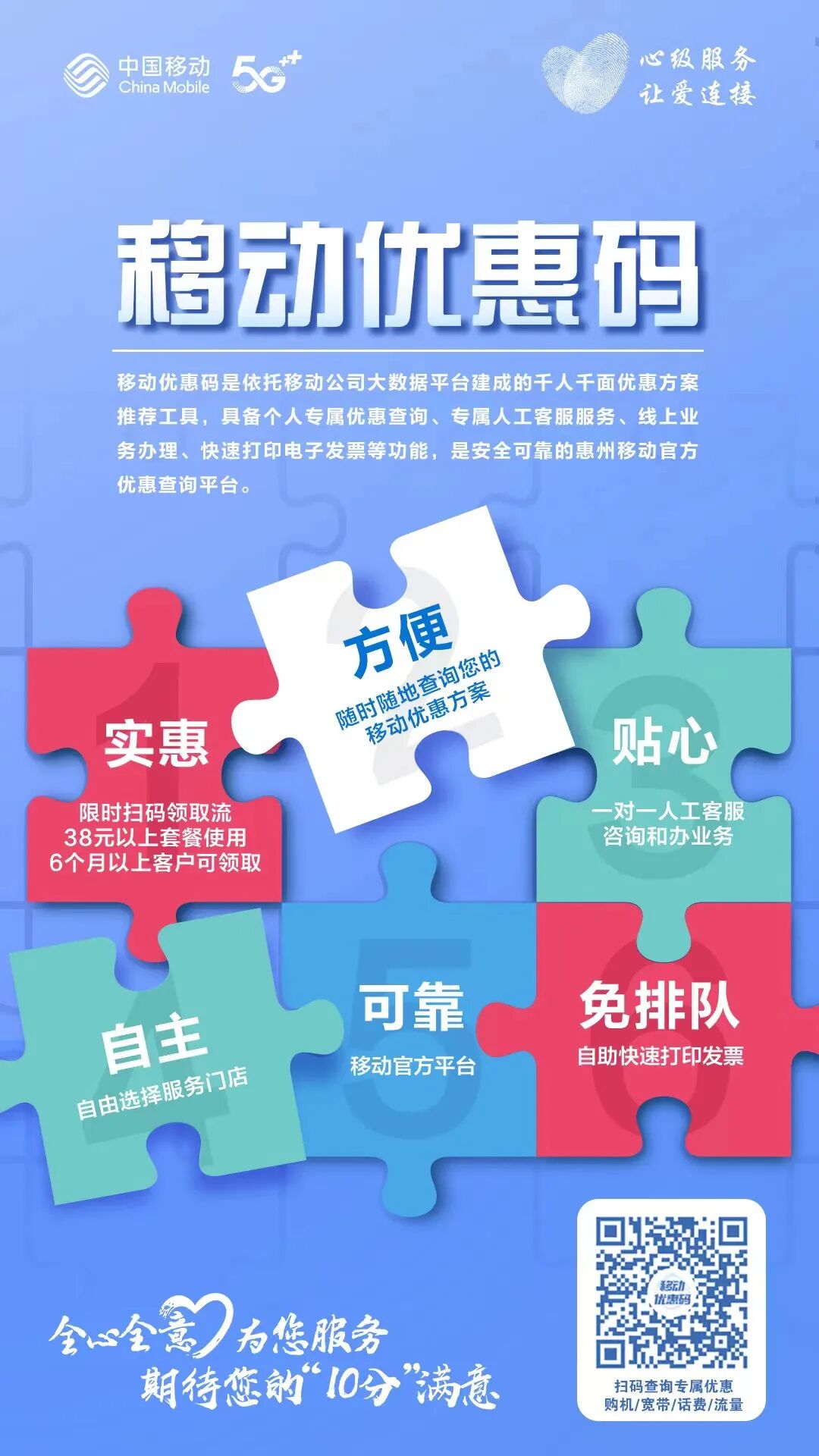 只要使用惠州移动38元及以上套餐6个月的留惠客户