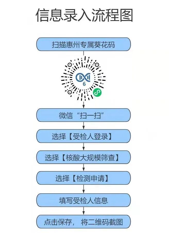2、为提高核酸采样效率,请广大市民提前扫 “葵花码”录入身份信息生成“个人二维码”,老人、孩子可由家人代为登记(之前已申请的依然有效)分批前往采样点。