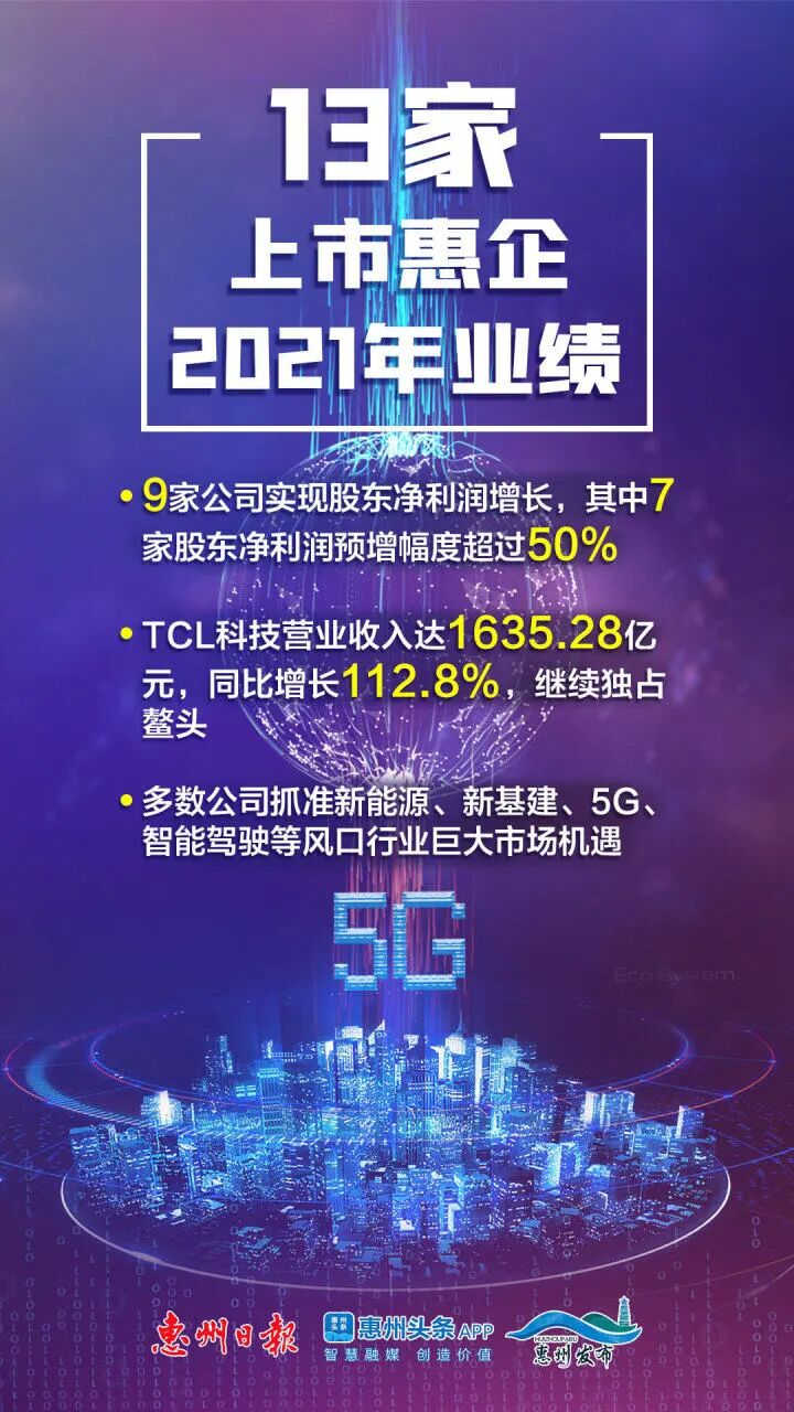 据悉,从1月底至今,17家惠州的境内上市公司中,除光弘科技、中京电子、科翔股份、红墙股份等4家深交所上市公司尚未披露2021年度的营收、净利润等信息外,广东骏亚、利元亨、九联科技等3家上交所上市公司,TCL科技、亿纬锂能、德赛西威、胜宏科技、华阳集团、格林精密、硕贝德、中潜股份等8家深交所上市公司,以及锦好医疗、德瑞锂电这2家北交所上市公司,均已发布2021年度业绩预告或业绩快报。