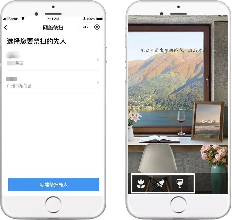 4、在祭扫服务首页点击“网络祭扫”,选择需要祭扫的先人,进入祭扫页面。