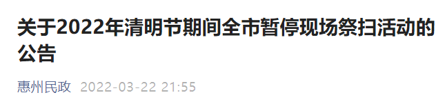 清明节即将到来,根据当前疫情形势,为坚决有效阻断疫情传播,避免传统的现场祭扫引起人员大规模流动和高密度聚集而造成的风险隐患,切实保护全市广大市民的身体健康和生命安全,现将2022年清明节期间全市暂停现场祭扫活动公告如下: