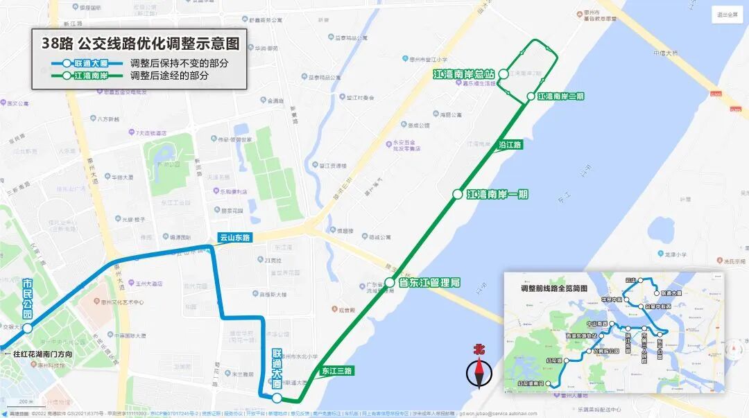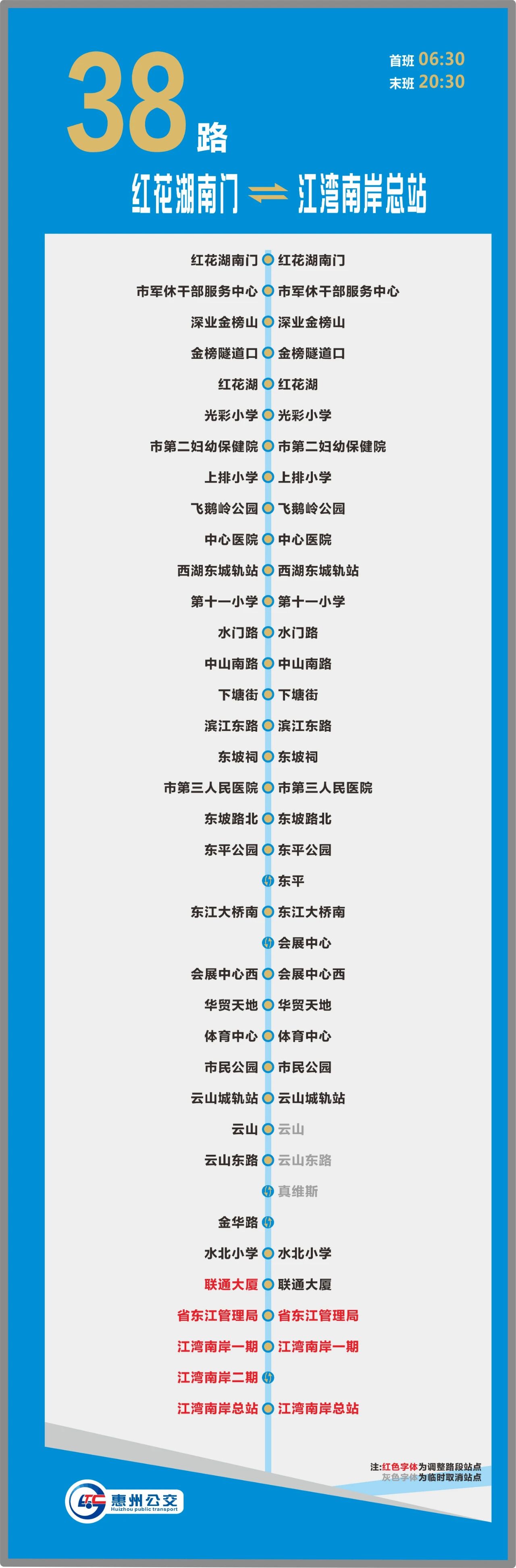 省东江管理局、江湾南岸一期、江湾南岸二期(靠江边单向)、江湾南岸总站等4个站点。