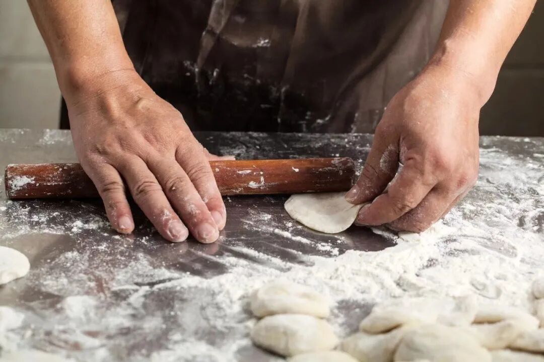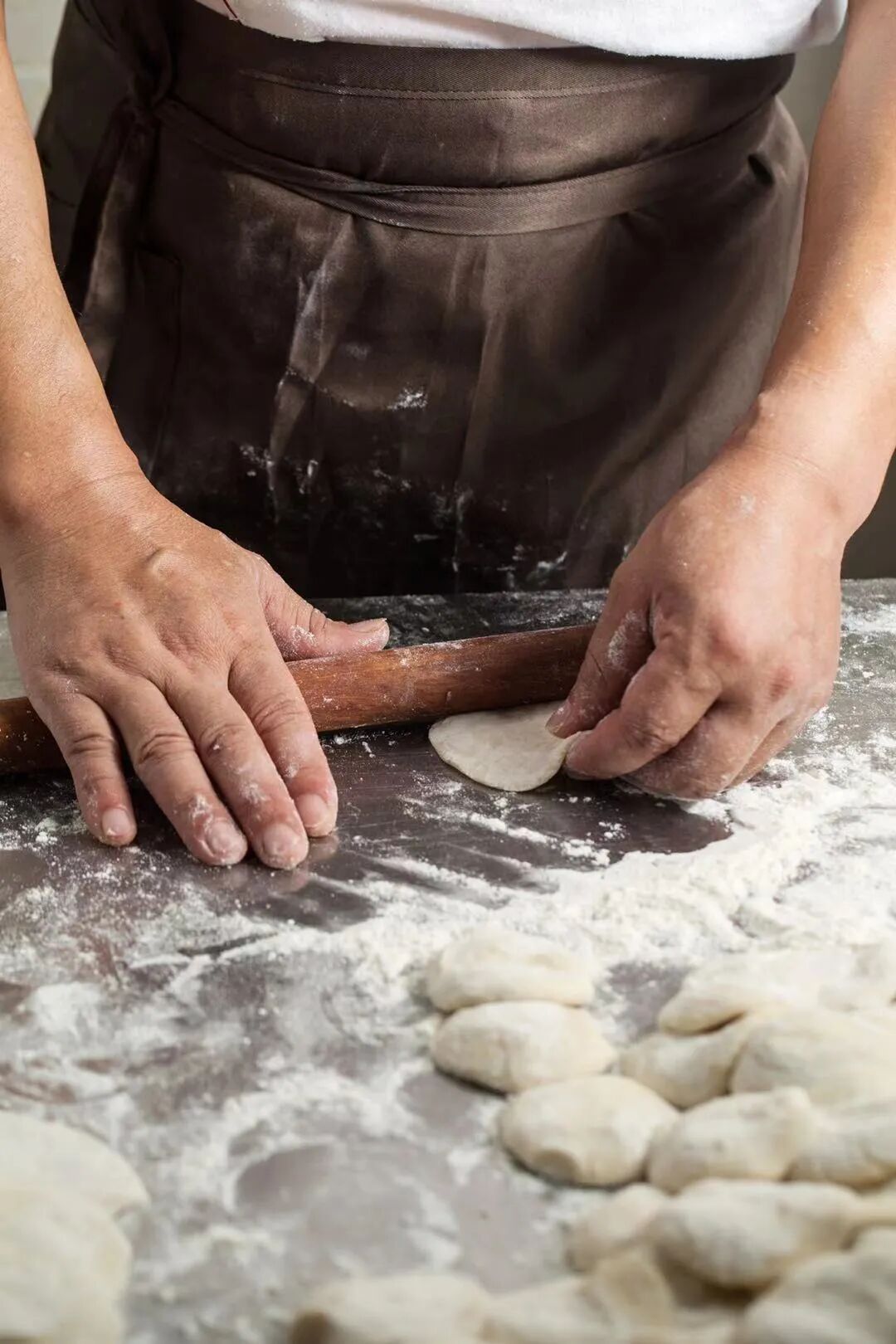 味鼎轩的饼皮都是师傅每天手工现擀的