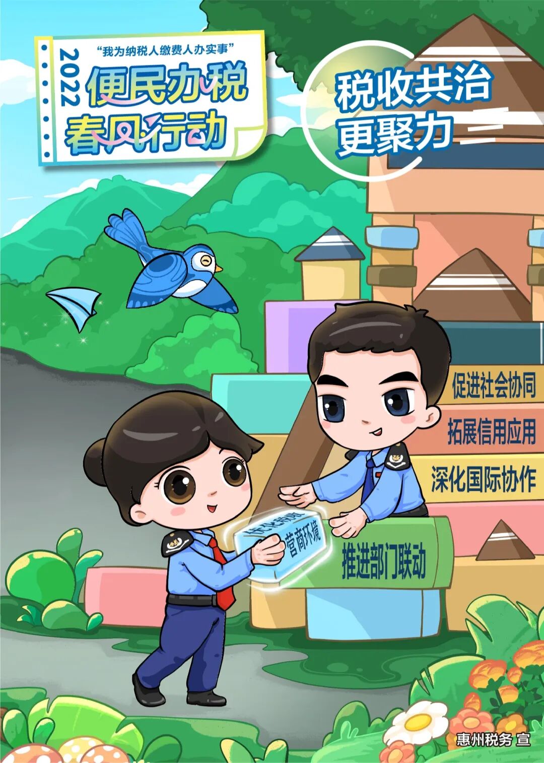 2022年是全国税务系统“便民办税春风行动”的第9年,惠州税务积极贯彻落实税务总局、省税务局部署,紧扣“智慧税务助发展 惠企利民稳增长”主题,在推进税务总局“春风行动”5大类20项80条措施的基础上,打造十项“惠民税事”税费服务成果,致力于纳税人缴费人提供更贴心、更便利的办税缴费服务,持续提升纳税人满意度和获得感。今年的“春风行动”都有哪些内容呢,让我们一起看看吧!