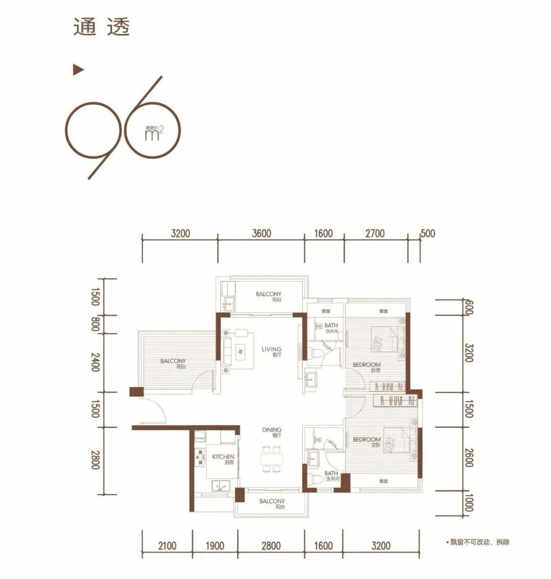 户型整体空间比较开阔舒适,动静分区明确,南北双阳台配置,空气流通性优越。另外,入户阳台可根据实际改造成老人房、儿童互动室等。