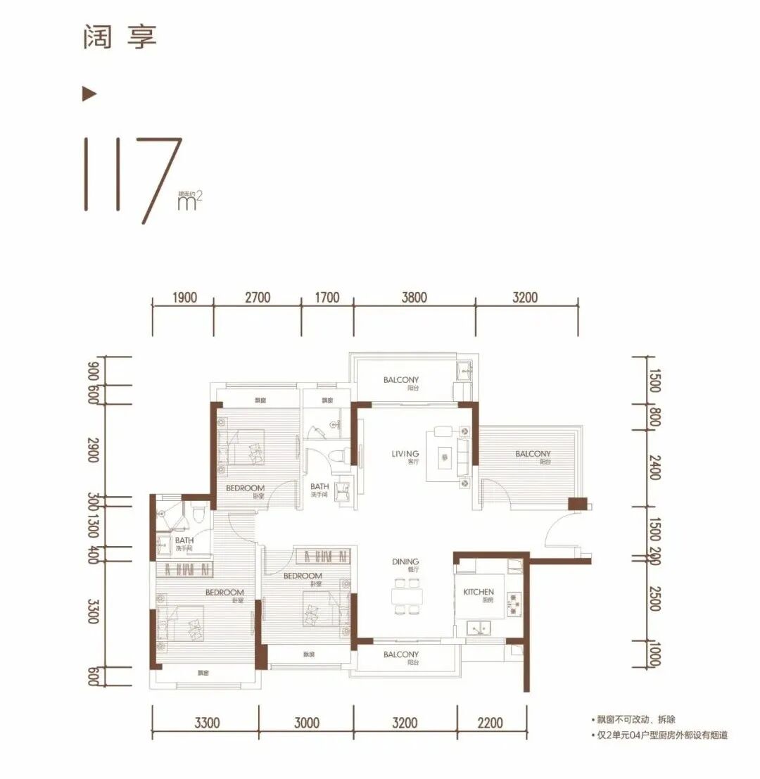 厨房、客厅、主卧、次卧呈“一”字布局,均为朝南向,使通风采光面更加良好。同样地,该户型还有一个灵活改造的空间,让三房变四房,很好地满足多口之家的居住需求,对于现下想改善置业的人群而言,也会是一个不错的选择。