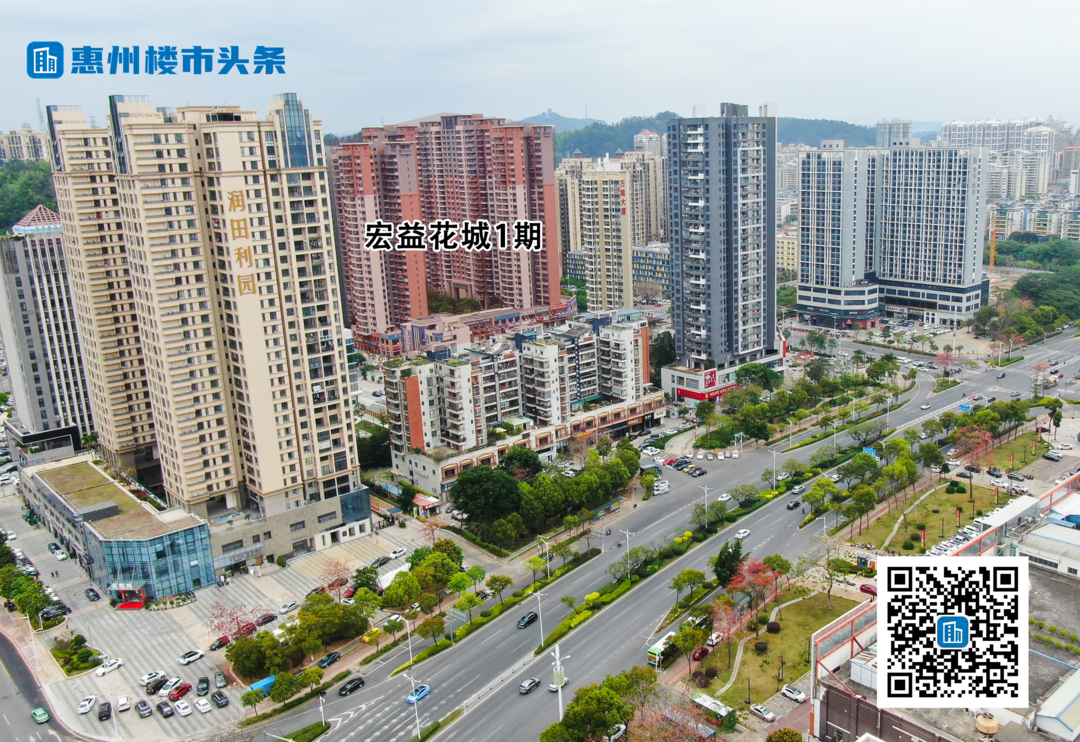 资料显示,宏益花城1期临近润田利园,旁边还有惠州市第二十七小学,总建筑面积超12万㎡,共计6栋高层,整个小区736户,2017年建成交付。