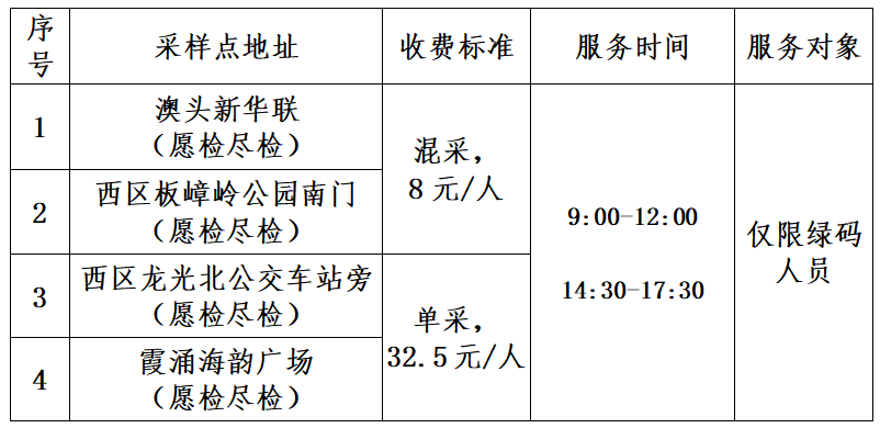 为方便区内群众核酸检测,大亚湾区自3月25日起临时开设部分“愿检尽检(自费)”核酸检测采样服务点,3月26日设置情况公告如下: