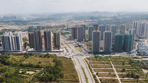 金裕星河丹堤项目在建3期,多个楼栋已经完成封顶。