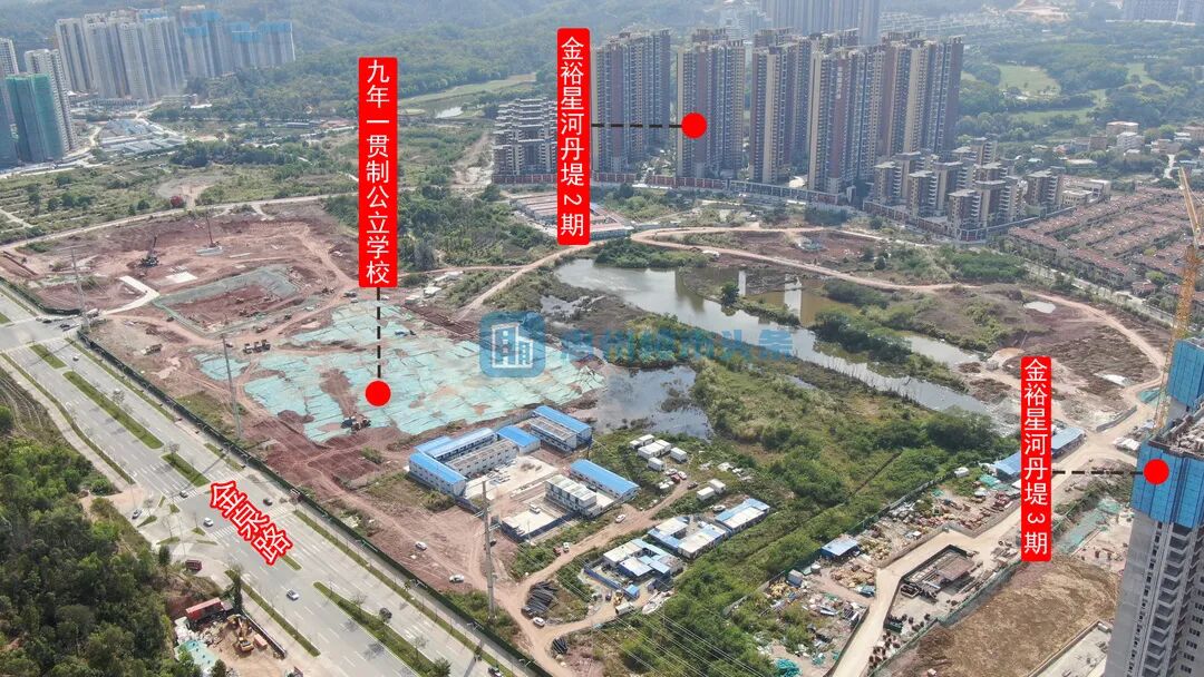 隔着金泉路,在金裕星河丹堤配建的公立学校对面,还规划了一所惠州市第八中学高中部。