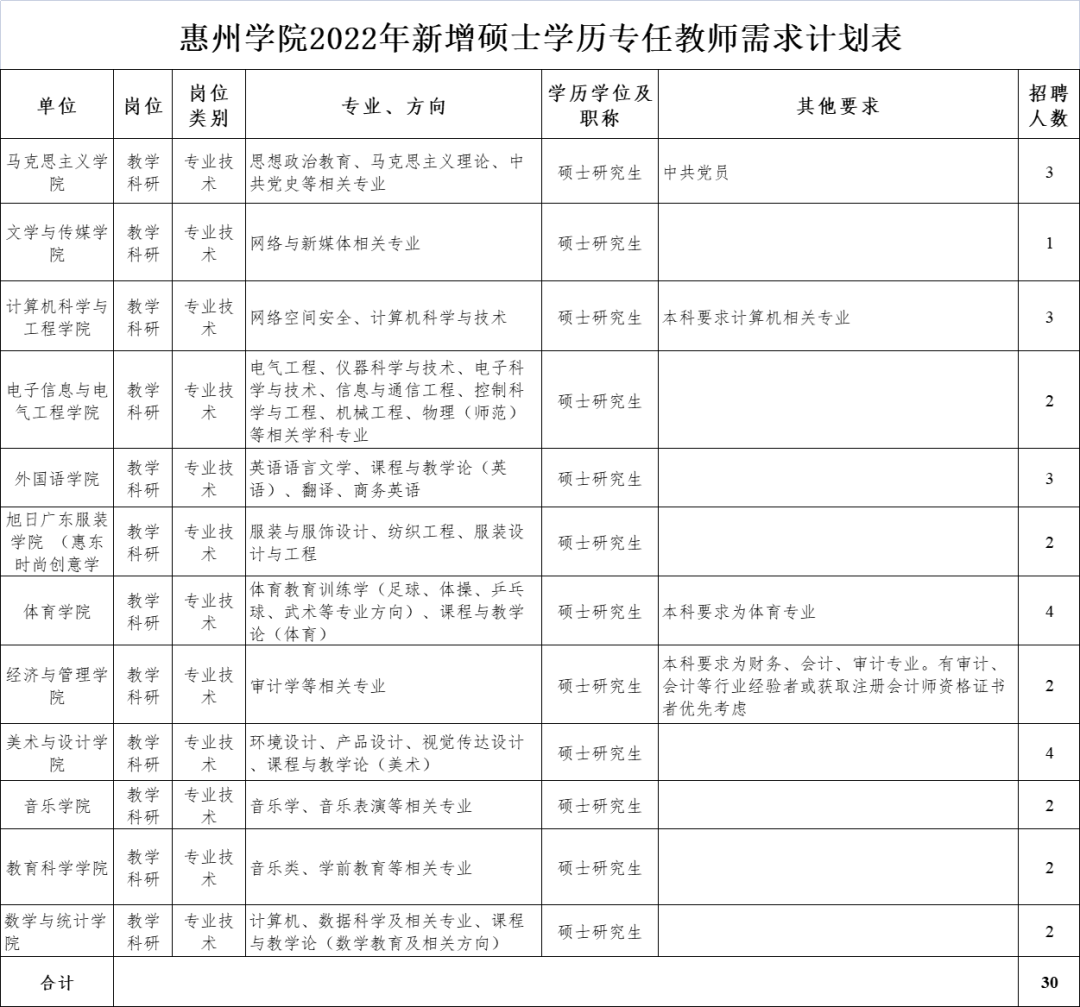 惠州学院2022年专任教师(新增硕士计划)招聘