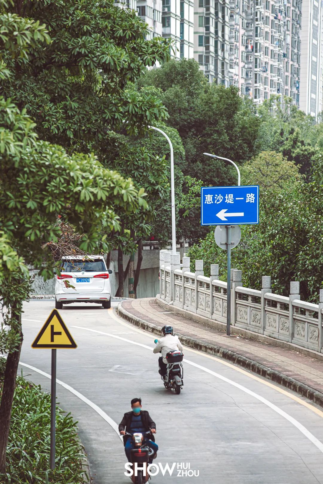 走过西枝江桥,在金灿灿的维也纳国际酒店前右拐,就进入了惠沙堤一路。
