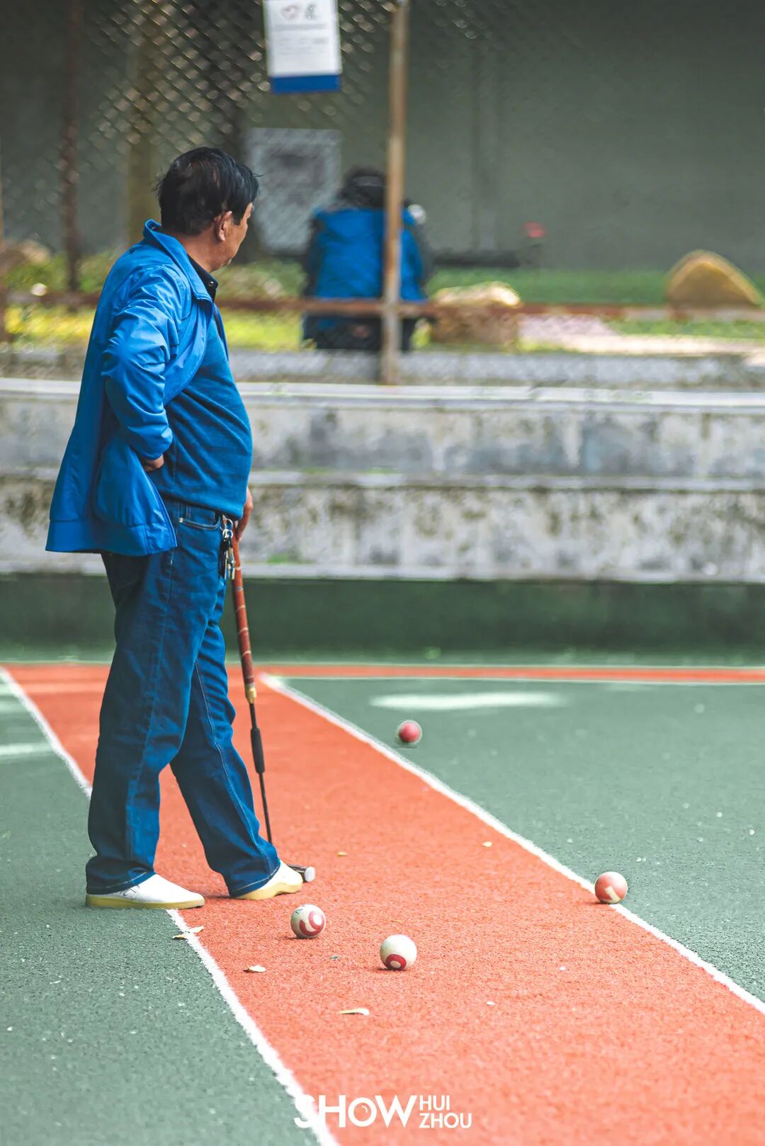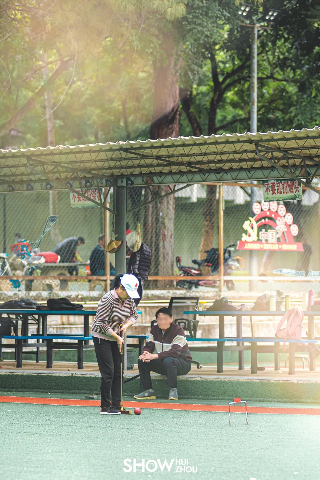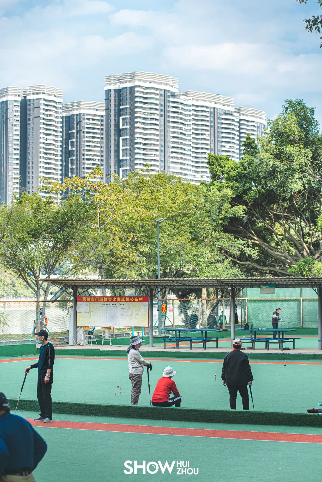 沿江散步的人群自不必说,在公园少见的门球场中,年长者盘算路径、挥舞手中球杆,让小球前往目的地。