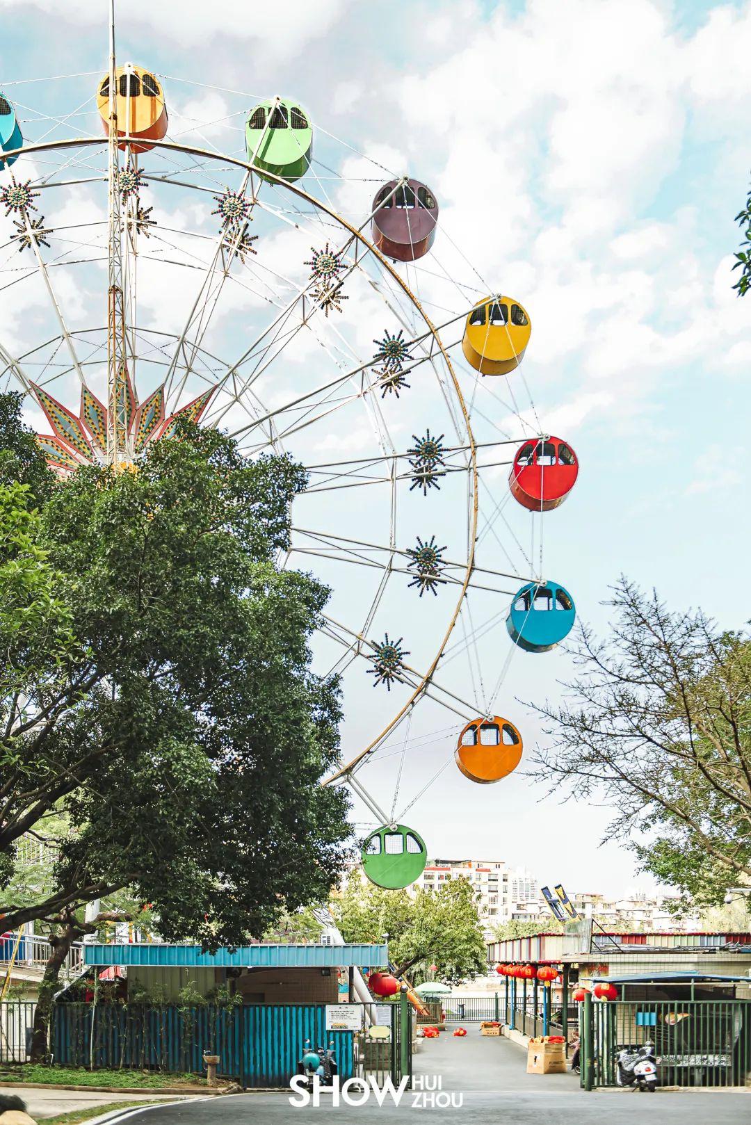 有着彩虹般色彩的摩天轮,可谓是游乐场的“明星”,凭借着巨人般的身高,你可以快速定位到游乐场所在地,乘坐摩天轮,即可一览江河惠州。