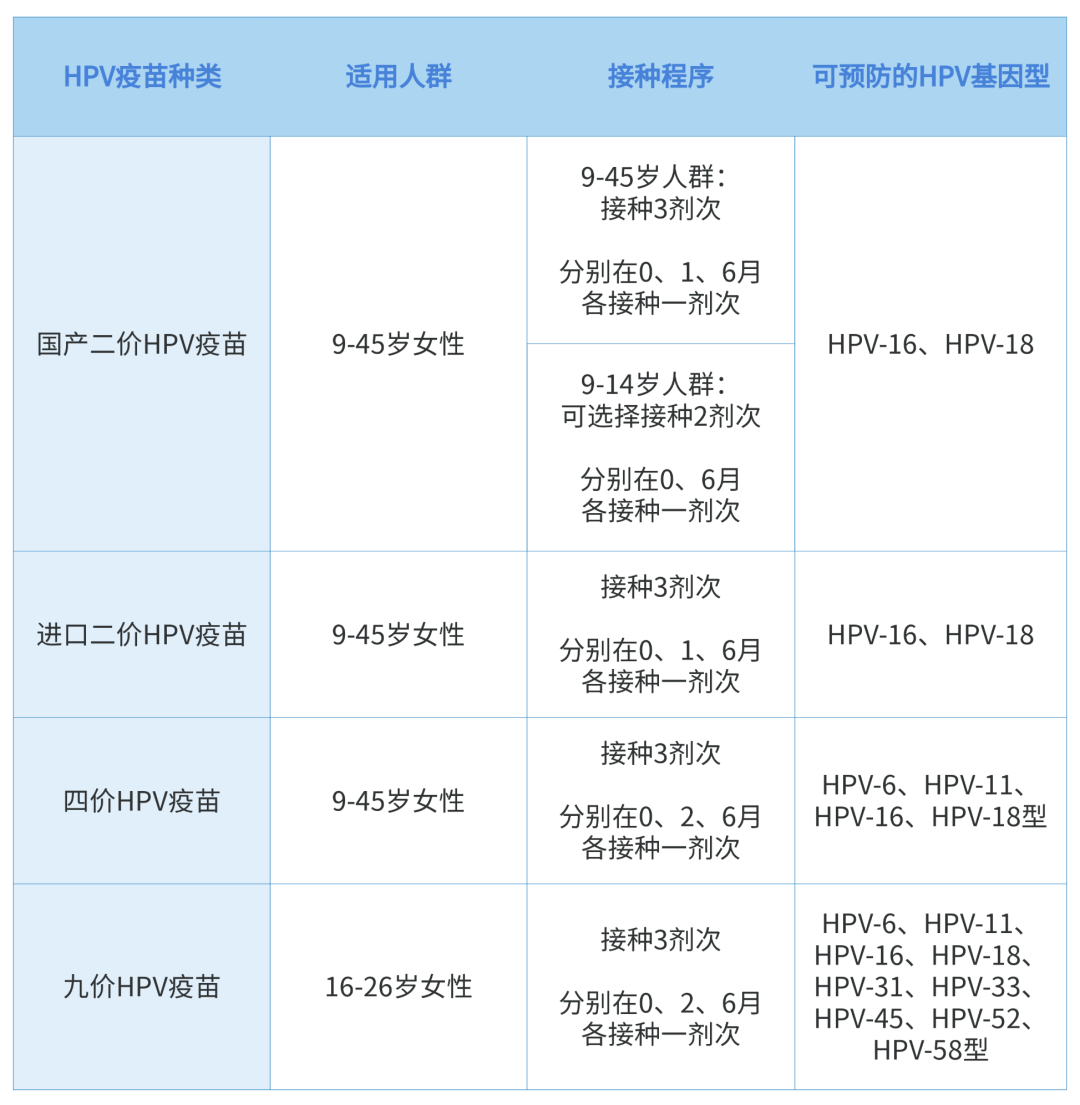 从公共卫生角度而言,二价、四价和九价疫苗在预防宫颈癌(主要由HPV16和HPV18导致)方面可以提供相当的免疫原性和保护效力。