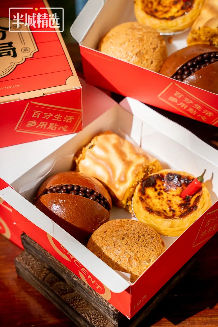 惠州人气国潮饼局「百分饼局」,12.9元「爆款小礼盒」,一键包揽百分拉丝卷、巧克力脆脆包、辣椒蛋挞、斑斓麻薯,还有10.8元抵20元任选券,东平、上排2店通用!
