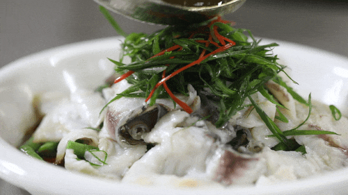 – 葱油淋爽口罗非鱼片 –
