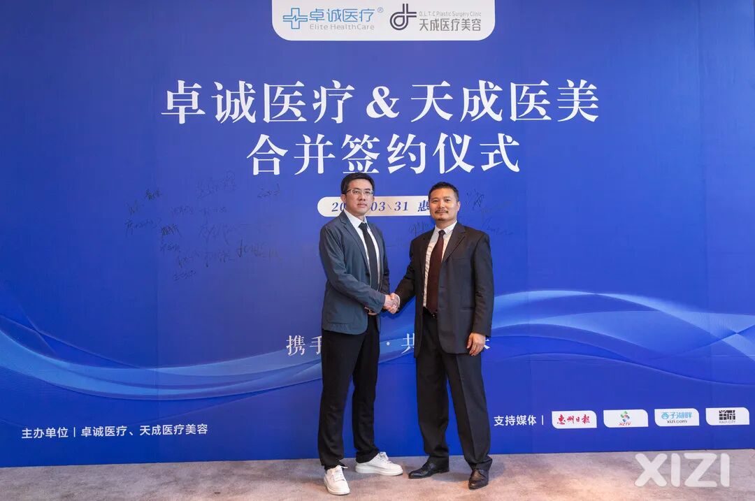 3月31日, 惠州市卓诚医疗投资发展有限公司(以下简称“卓诚医疗”)与惠州市天成医疗美容有限公司(以下简称“天成医美”)在惠州皇冠假日酒店举办“合并签约仪式”并取得圆满成功。