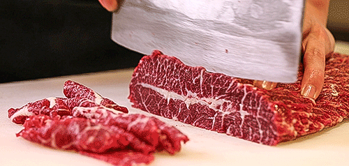 店内的师傅个个都是潮汕”底子”,有着多年的切肉经验。为保证牛肉的营养和水分不流失,十个部位讲究十种不同的切法,每一片牛肉都做到厚薄适中,纹理清晰。