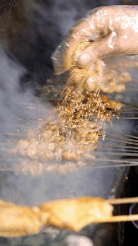 烤蚕蛹是直接生烤的,因为只有生烤蚕蛹才能更好地呈现出蚕蛹的鲜嫩。烤制好后的蚕蛹外皮十分香酥,内里是鲜嫩满满的蛋白质,相比我们日常的烤物的口感多了一丝别致,没试过的食客可以大胆尝试!