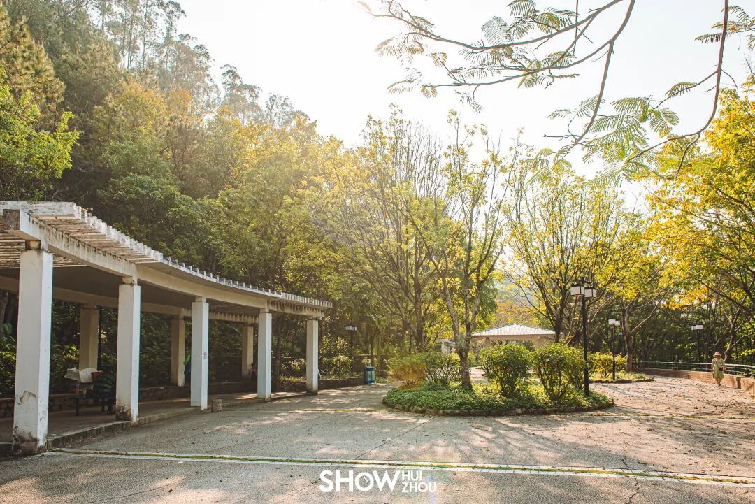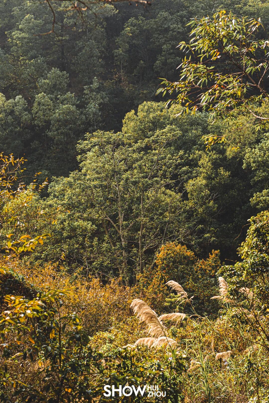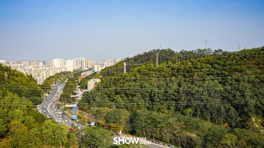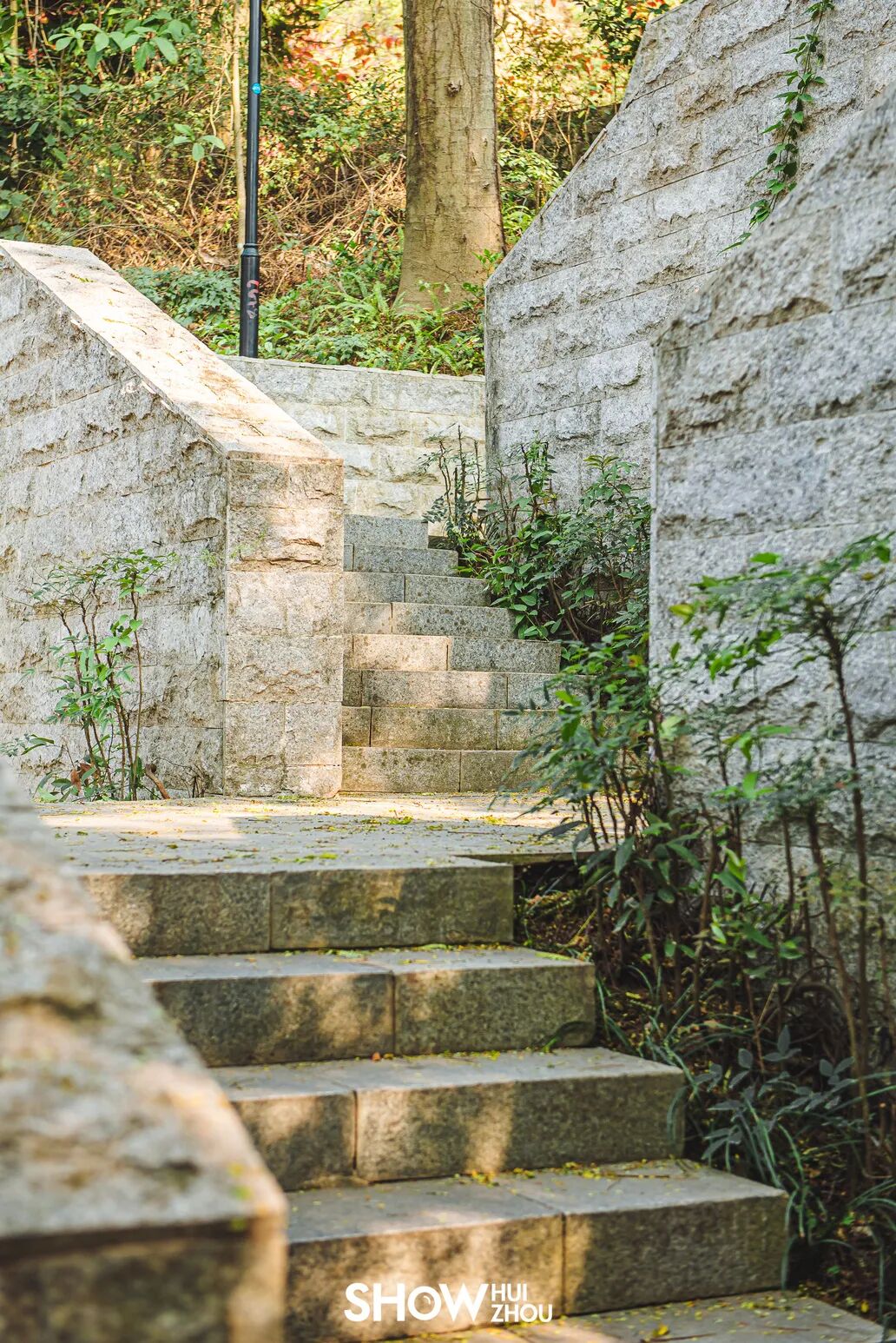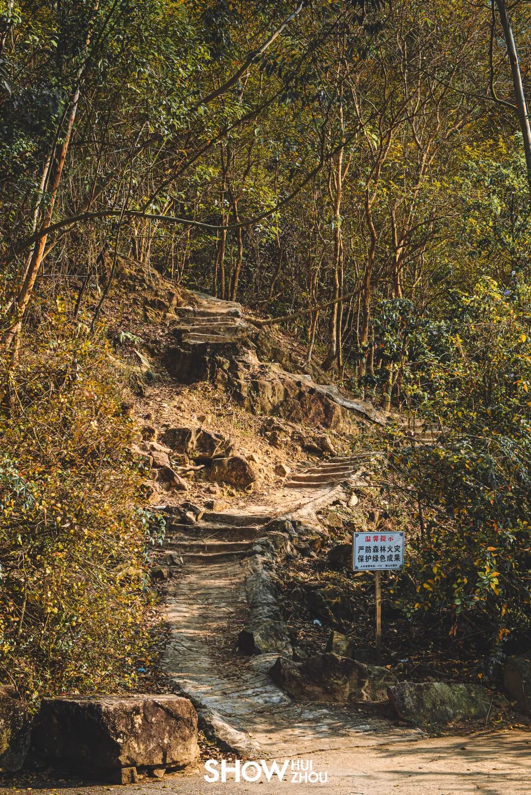 登一小段,可于树荫中窥探惠州南部新城高楼。