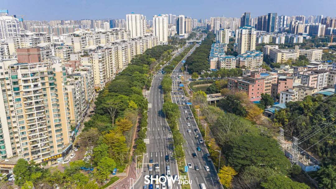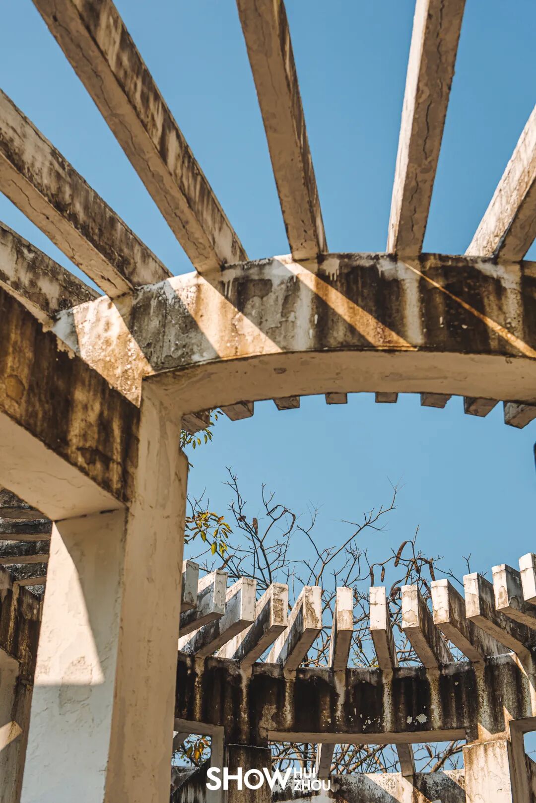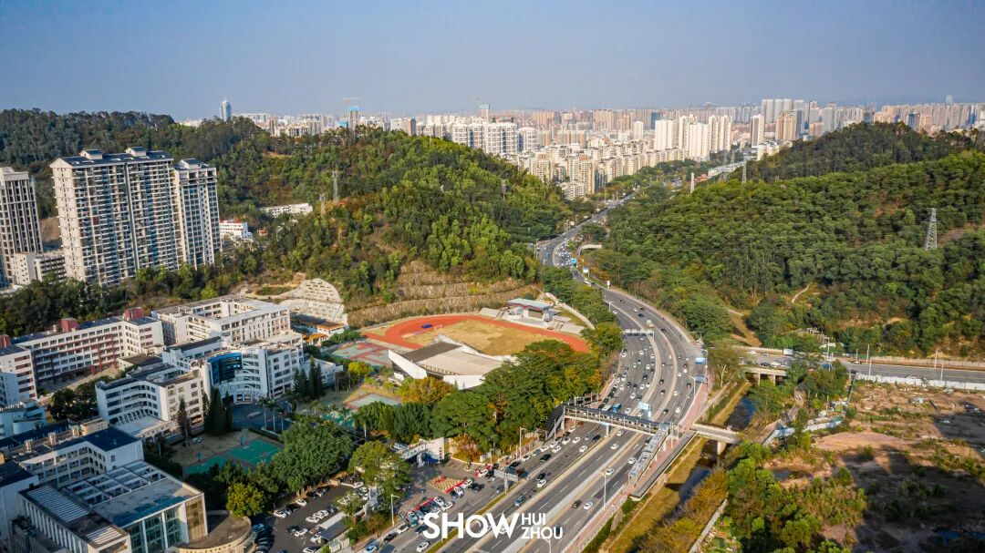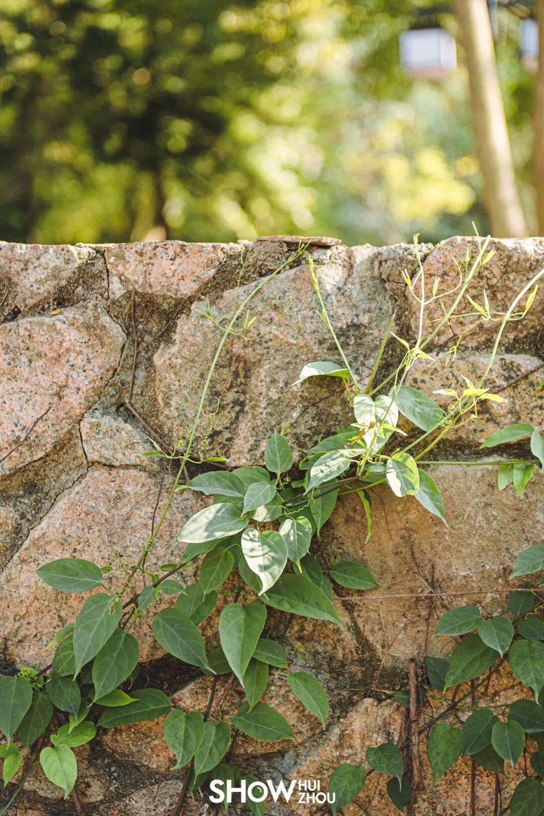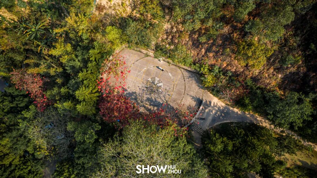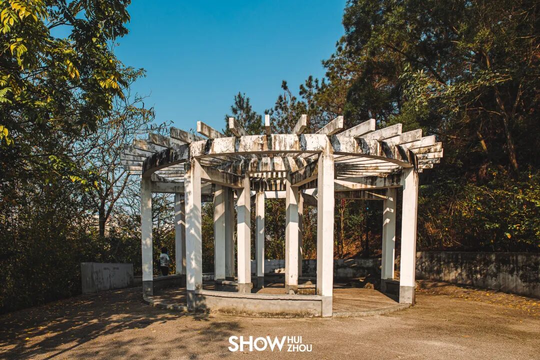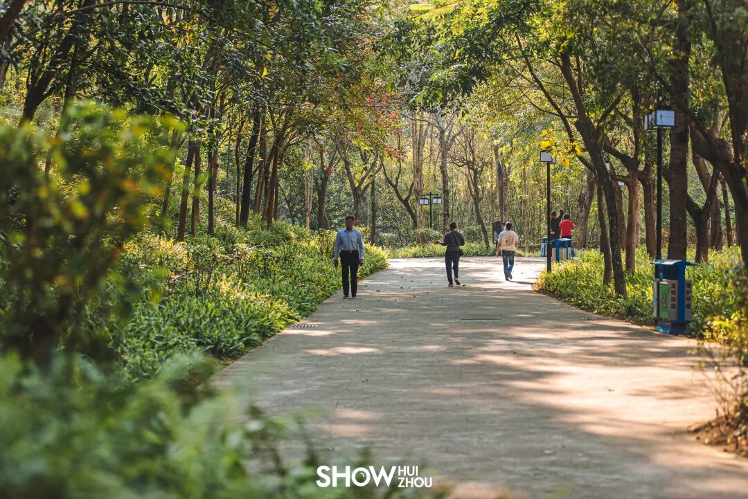登一小段,可于树荫中窥探惠州南部新城高楼。