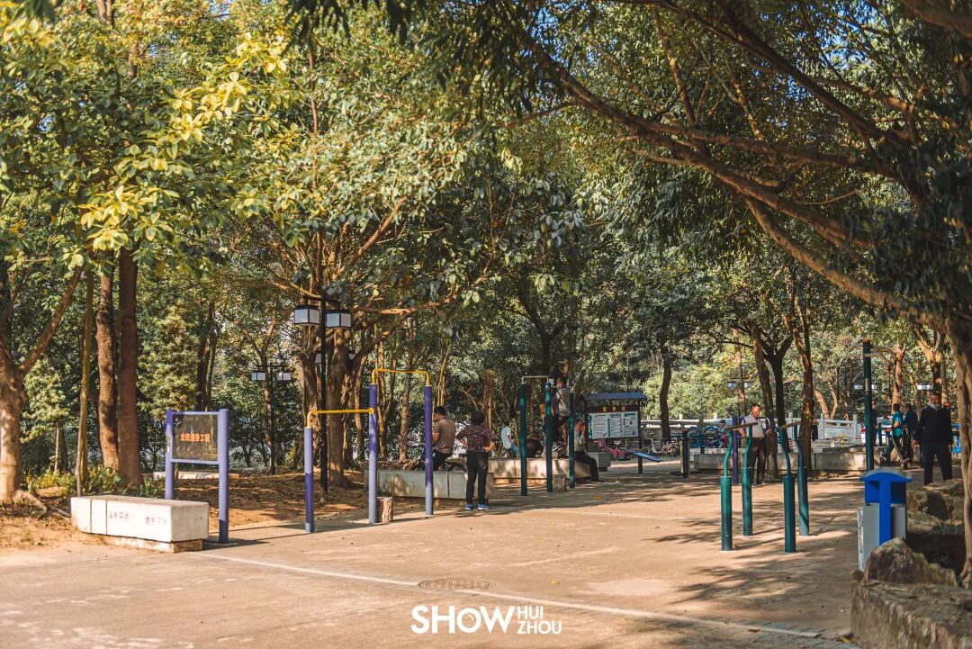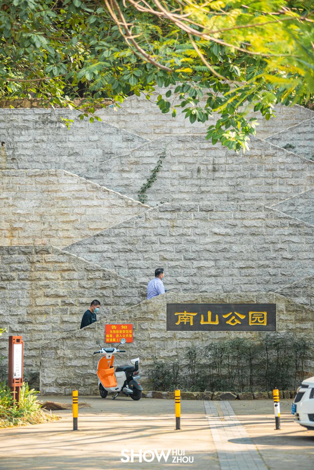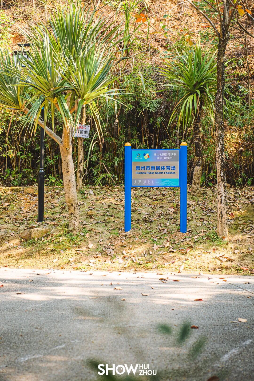 攀爬完第一阶梯,左手边便是「南山公园羽毛球场」,这也是惠州市惠民体育场。