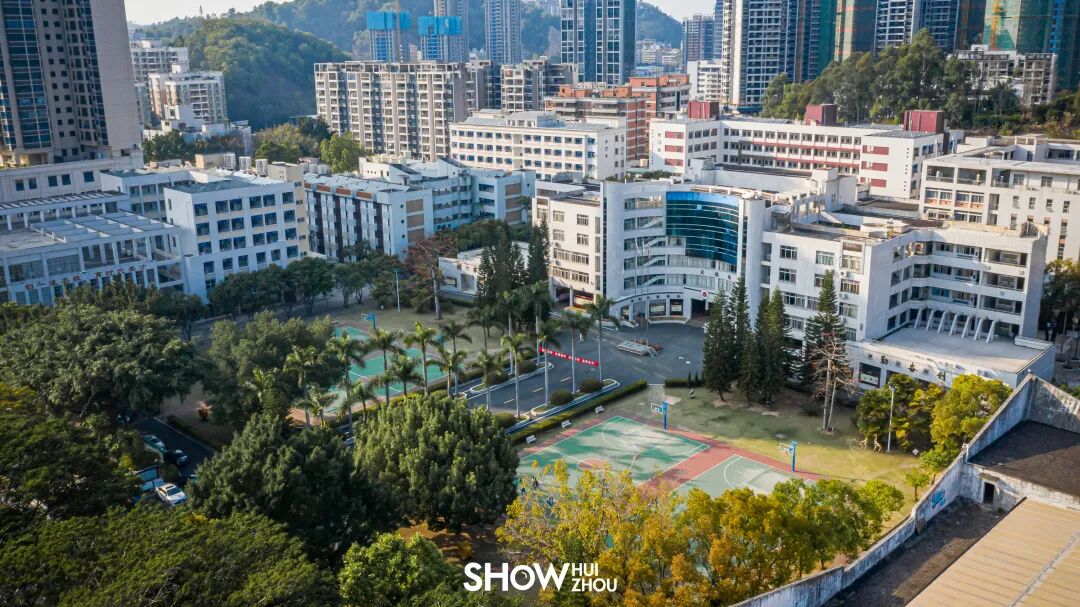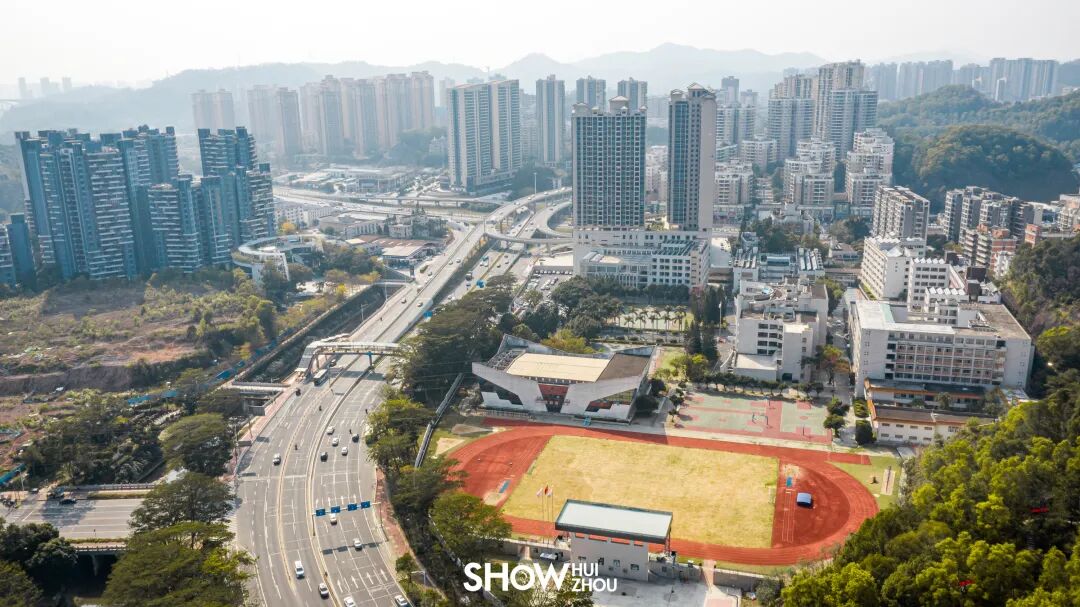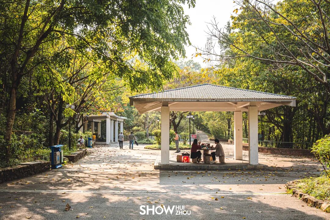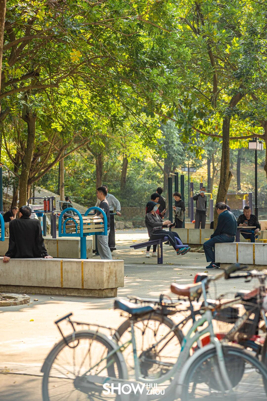 攀爬完第一阶梯,左手边便是「南山公园羽毛球场」,这也是惠州市惠民体育场。