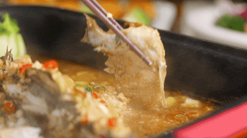 新鲜的鲈鱼整鱼下锅,经过红辣椒、黄贡椒、蒜蓉等秘制而成的独家酱料烹饪后,又香又辣的同时还保留住了鲈鱼的鲜味。