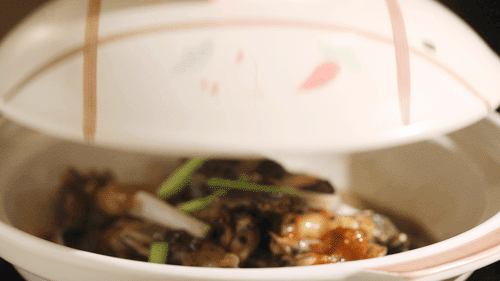 甲鱼和鸡肉经过姜、葱、蒜等佐料翻炒提鲜后,搭配黑松露酱炒制煸香,再用调好的顶汤入味收汁,才造就这一番极致美味。