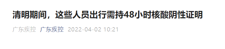 2021年12月28日起,广东省正式启用涉疫风险人员12320排查专号。涉疫风险人员入粤前要在“粤省事”小程序完成入粤申报,并留意接听、查看12320专号电话及短信。