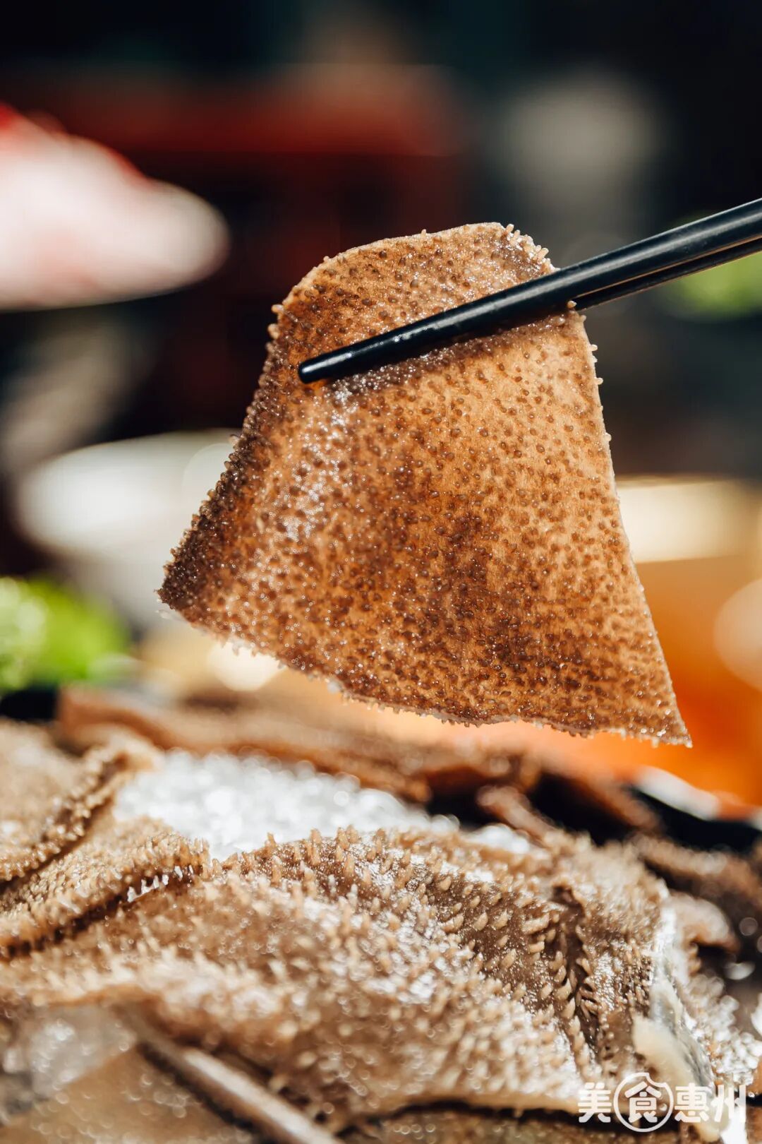 毛肚可是涮菜不可缺少的“灵魂”!在捞九门家,一直占据C位的空运鲜黑毛肚,足够薄且面积巨大,毛刺坚挺,一看就是新鲜货。