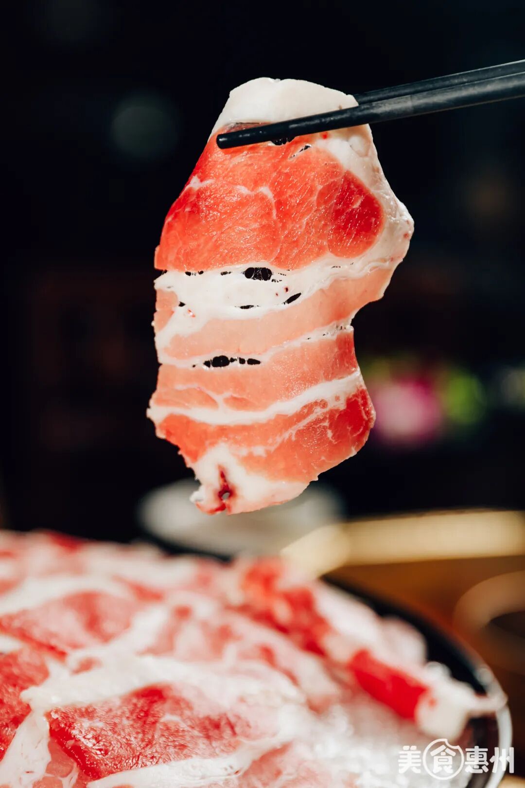 店里肉片都是现切现出,每一片都有着清晰漂亮的纹理,如同大理石一般,片片薄厚均匀,肥瘦相间,光看着都觉得很美。