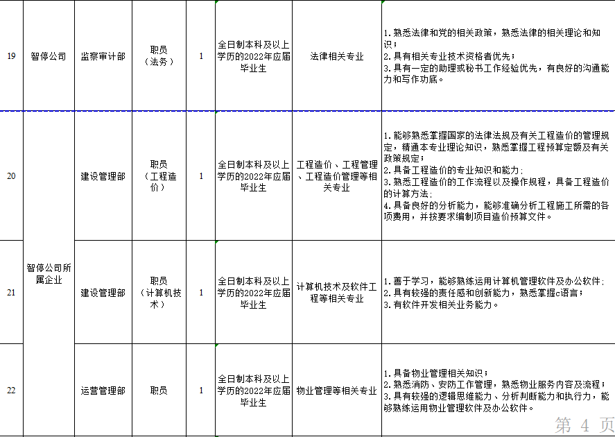 7.智停公司需招法务1名、项目管理1名、信息技术1名、物业管理1名